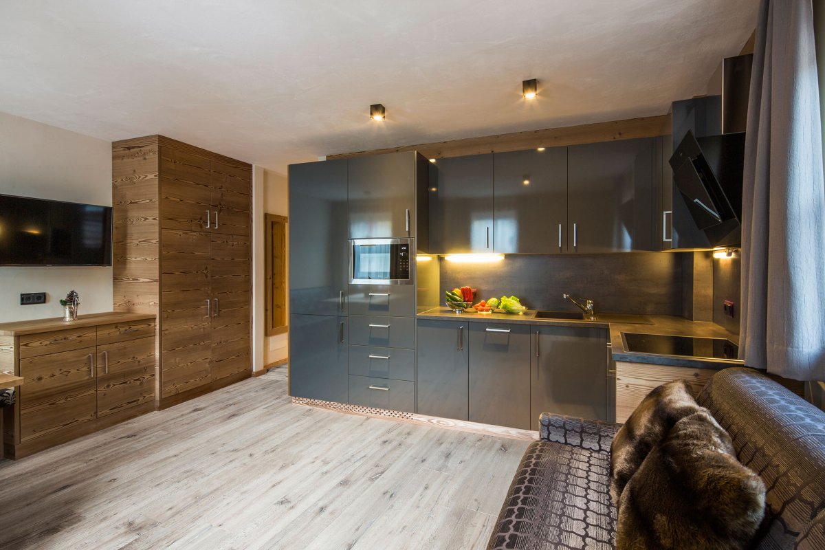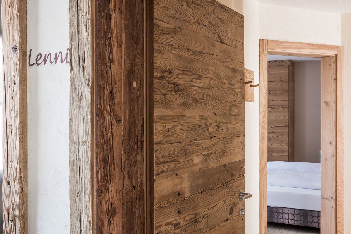 L`appartamento "Lenni" costruito in abete antico evaporato, è costituito da una zona soggiorno con divano (trasformabile in letto, adatto per un adulto e un bambino (140x195), cucina, camera doppia con balcone e bagno con doccia.
